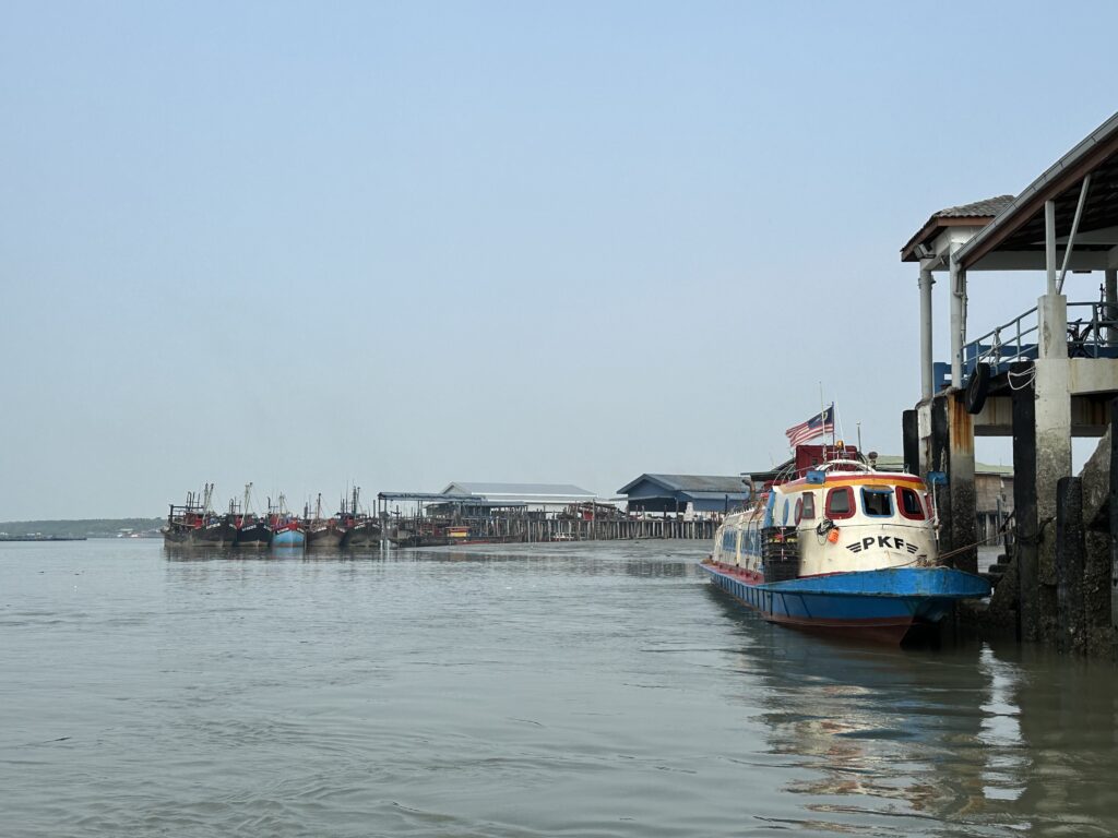 Upon arriving at Port Klang, the end of the train line, we found several vendors selling boat tickets to Pulau Ketam. The boat ride cost around RM 7-10 per person. After purchasing our tickets, we embarked on a short and scenic boat journey to the island.